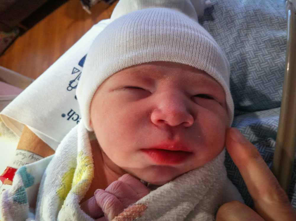 Several more rounds of pushing, and out came our son’s head. His face was down and then turned to his side. Seeing his face for the first time was indescribable. Simply beautiful. Throughout the pregnancy, we were not able to get a good look at his face on any of the ultrasound appointments. He was a shy baby in utero. Next, there was an ‘Aha’ moment, as the doctor found the culprit of our baby’s fluctuating heart rate. She quickly unwrapped the umbilical cord from around our son’s neck. Again, I kept a straight face for Angie. The focus now shifted to getting the rest of his body out, which didn’t take too long.